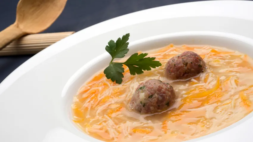 Receta de Karlos Arguiñano de sopa de fideos con bolas de jamón y zanahoria rallada, una alternativa a la tradicional sopa de fideos.