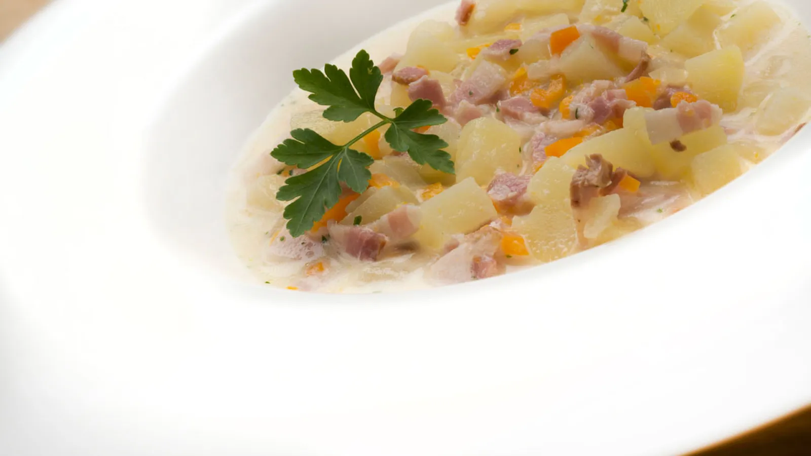 Receta de Karlos Arguiñano de sopa de patata con verduras y panceta, un plato nutritivo ideal para los días de frío.
