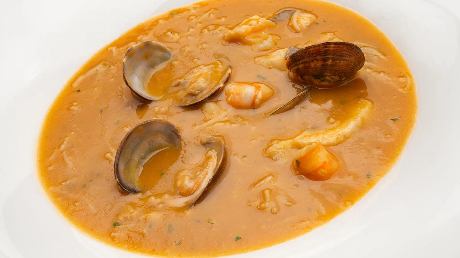 Los langostinos y almejas, también son escasos en cantidad representando el 15% del plato.