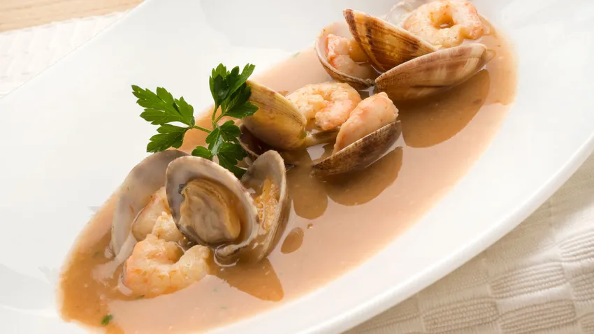 Sopa de pescado con gambas y almejas