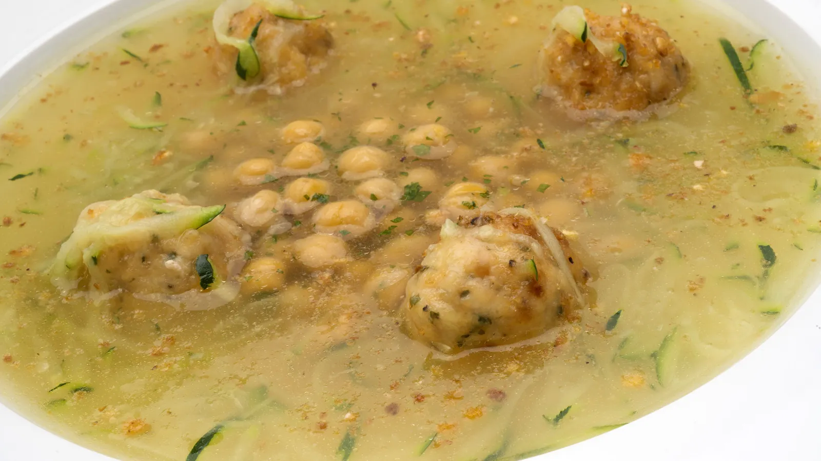 Karlos Arguiñano elabora una receta de sopa de tapioca, garbanzos, calabacín y caldo de pollo con albóndigas caseras de pollo.