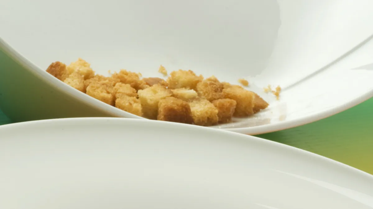 Corta el pan en dados y fríe en una sartén con aceite. Retira a un plato con papel de cocina.