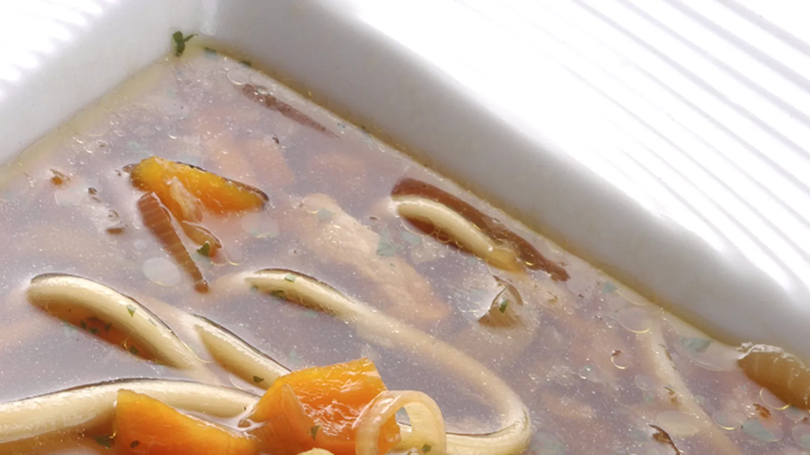 Deliciosa receta de sopa de udón realizada por Karlos Arguiñano con un aire oriental: lomos de cerdo, verduras y salsa de soja.