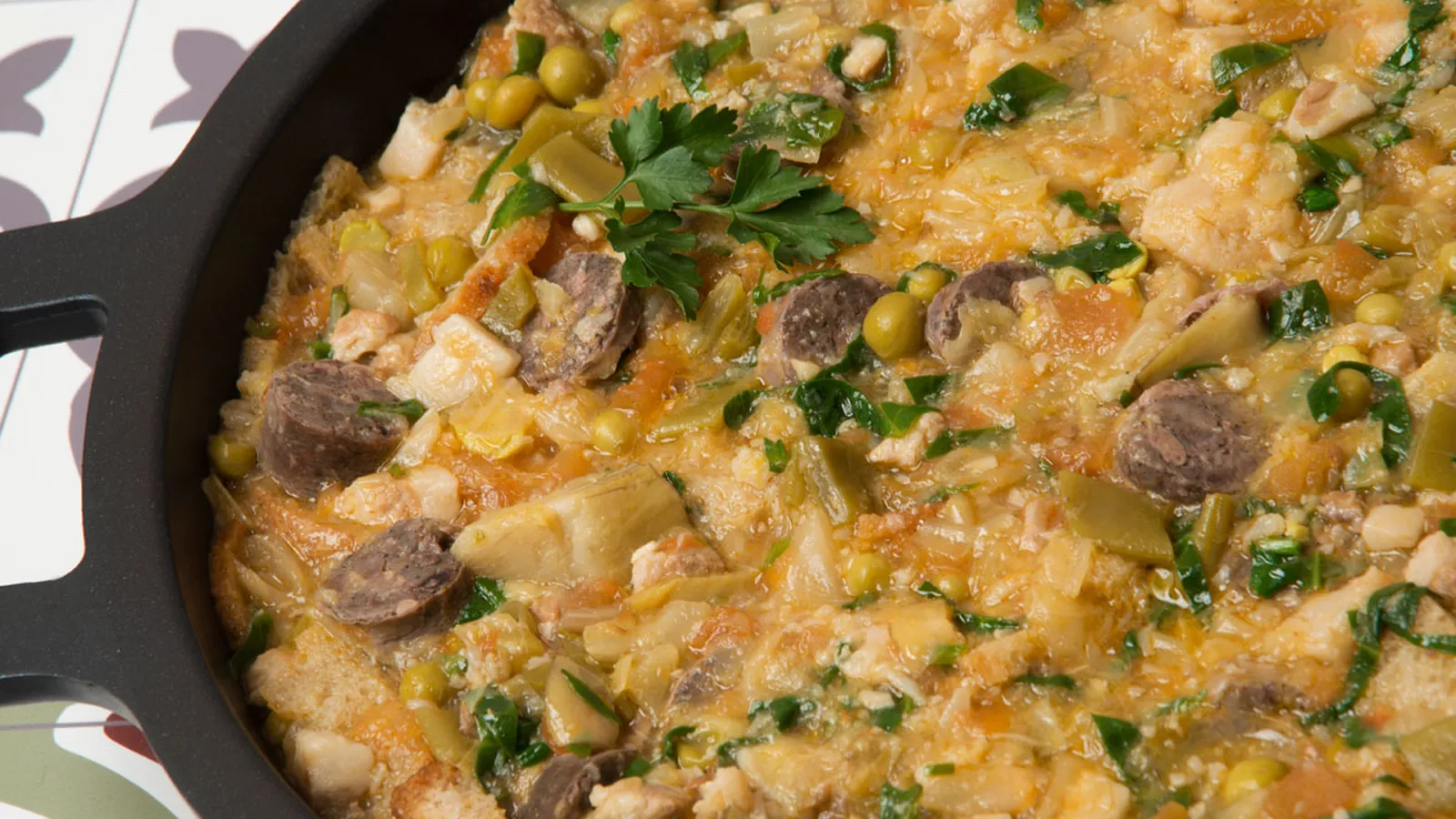 Receta de Karlos Arguiñano de sopas mallorquinas, un plato tradicional de Mallorca que se elabora con pan, panceta, butifarró, cebolleta, puerro, tomate, col, coliflor, alcachofas, guisantes, espinacas y judías verdes.