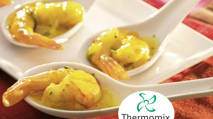 Cucharilla japonesa de langostinos al azafrán para Thermomix