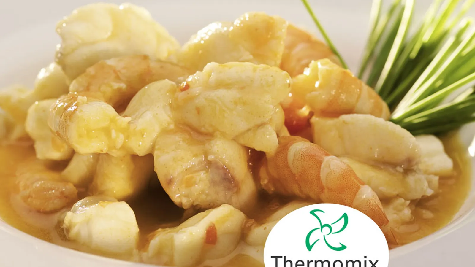 Para TM 31: coloque la mariposa en las cuchillas, introduzca el rape y los langostinos en el vaso y programe 6 minutos, 100º, giro a la izquierda, velocidad 1. Para TM 21: ponga el rape y los langostinos en el cestillo, coloque el cestillo dentro del vaso y programe 10 minutos, temperatura Varoma, velocidad 3 1/2.