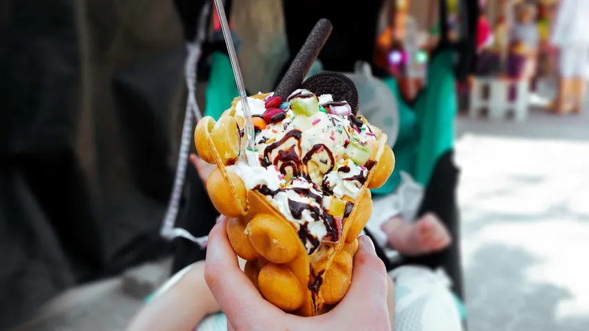 Pero si quieres ir más allá de la locura en el tema goloso, el waffle es otro tipo de gofre que ha ido cogiendo mucha fama en los últimos años. Una especie de bocata de gofre burbujeado relleno de nata, helado y un sin fin de siropes y toppings de lo más dulzones (de Kinder, de Oreo, de KitKat o de cualquiera que se te ocurra).