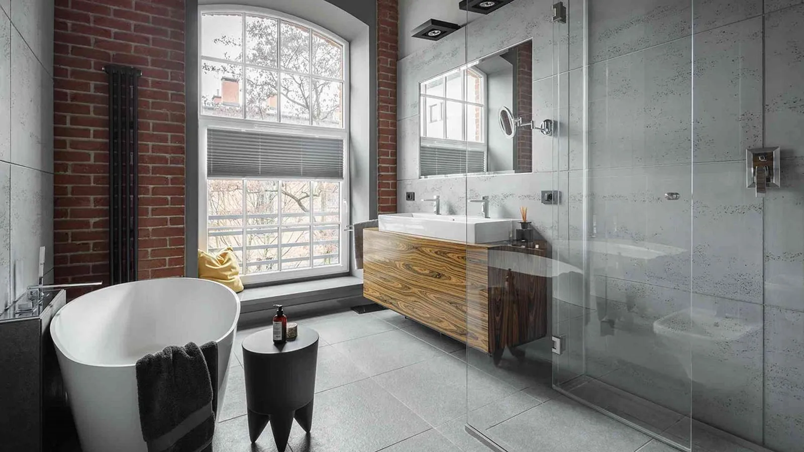 Aporta calidez a un baño de estilo industrial