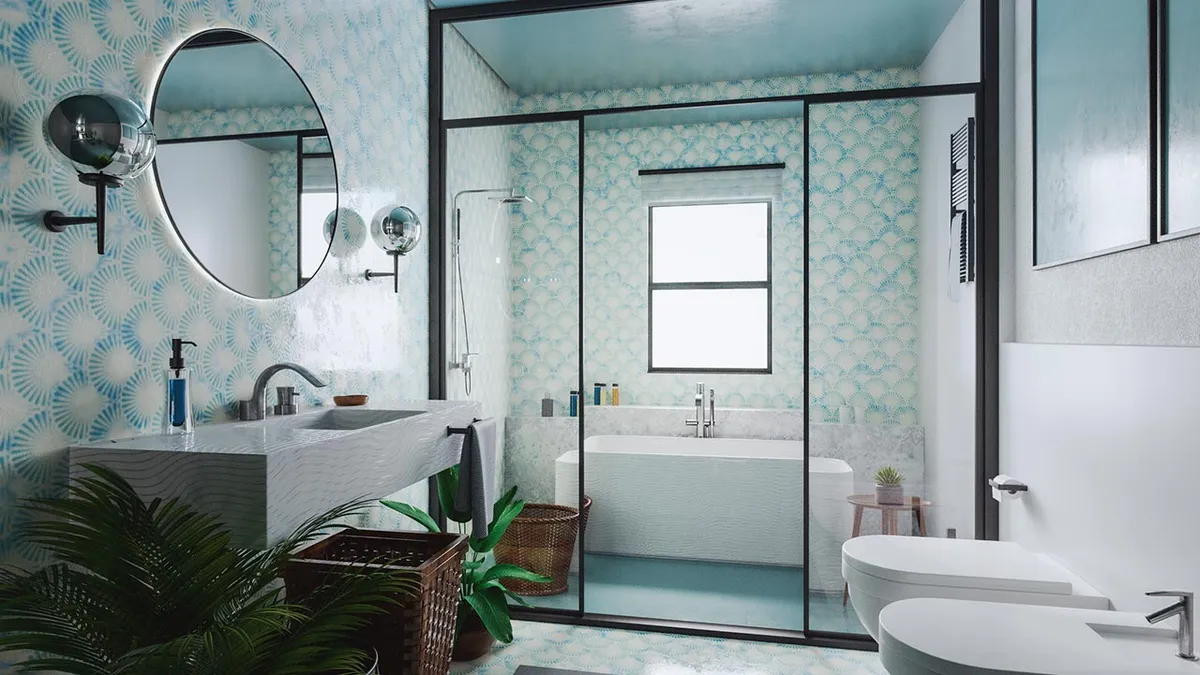 Para decorar la ducha, elige revestimientos decorativos resistentes al agua o baldosas que sean de diferente color a los de la pared del baño.