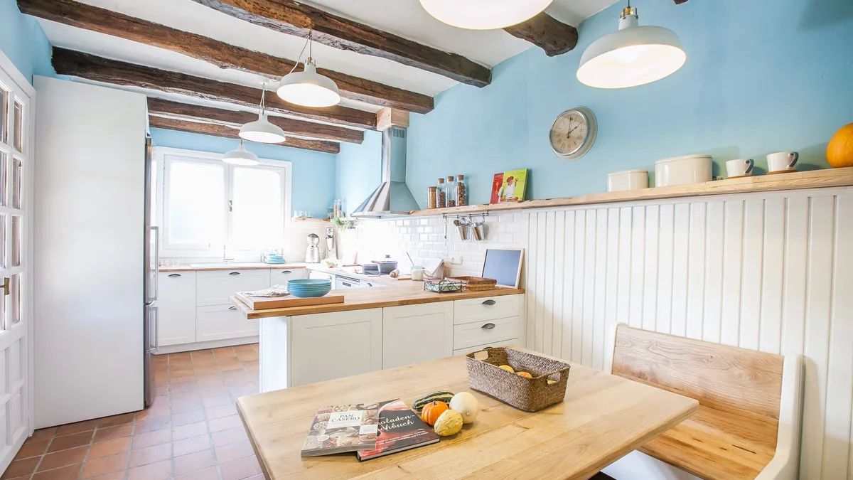 Paso a paso para decorar una cocina rústica en blanco y azul