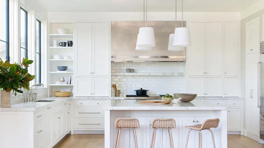 Cocina blanca de estilo rústico moderno