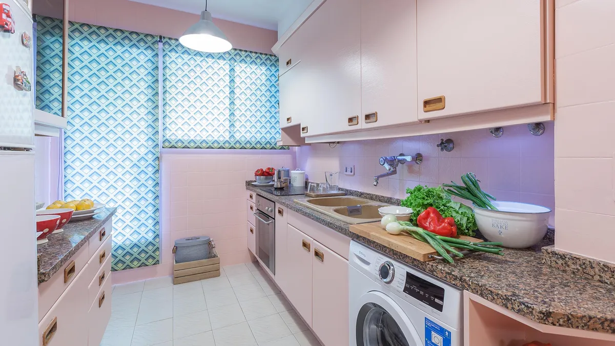 Cómo renovar sin obras la decoración de una cocina antigua para convertirla en un espacio colorido y divertido en tonos rosas.
