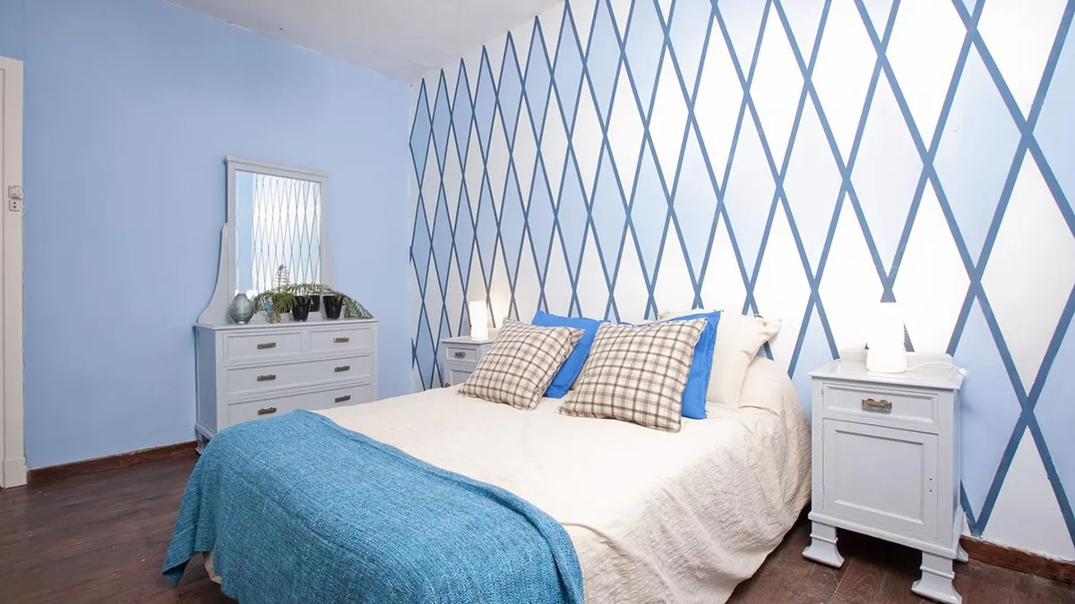 Decorar dormitorio con muebles reciclados, ¡y pared de rombos!