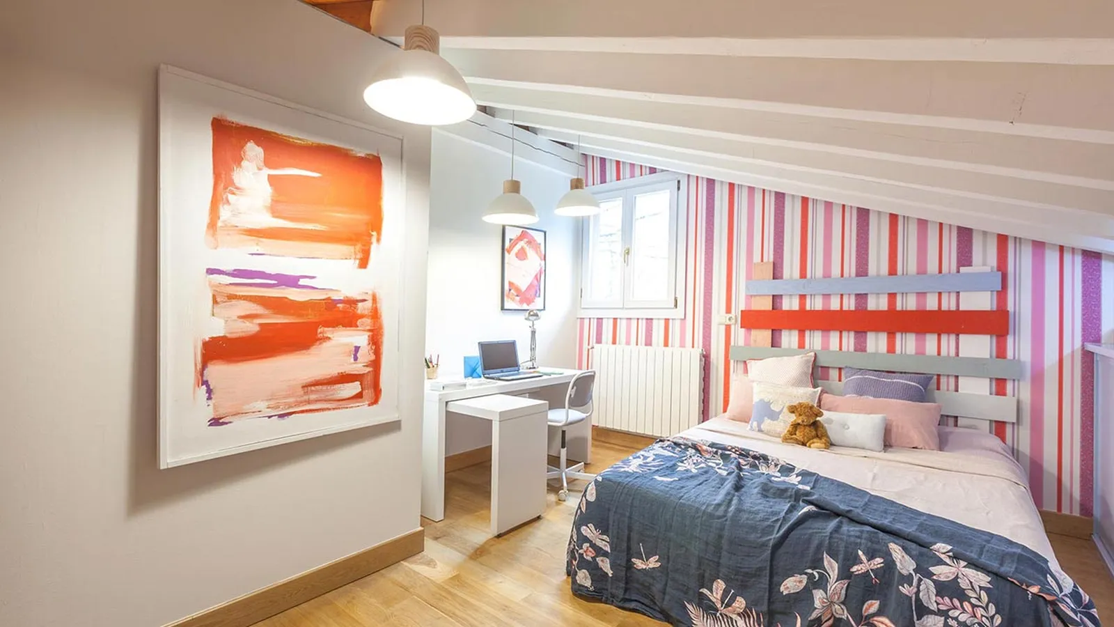 Vamos a decorar un dormitorio infantil abuhardillado dándole un toque de luz y color.