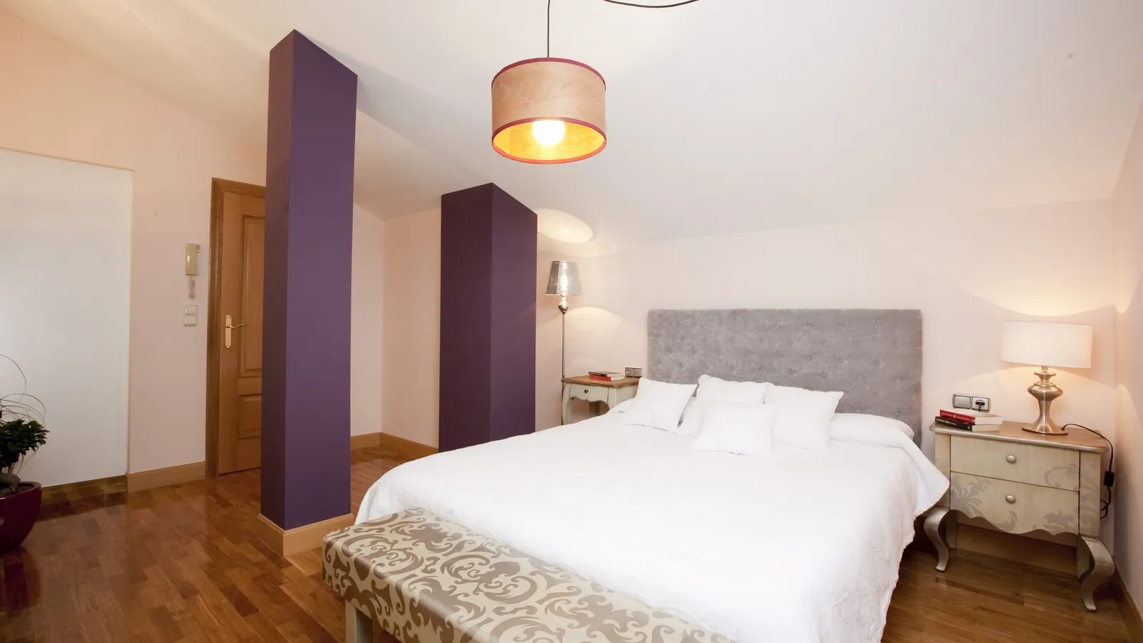 Una habitación elegante y especial se puede conseguir mezclando distintos ambientes. Y si la estancia tiene columnas y techos inclinados, lo que hay que hacer es aprovecharlos para obtener un espacio más particular y personal para las horas de descanso.