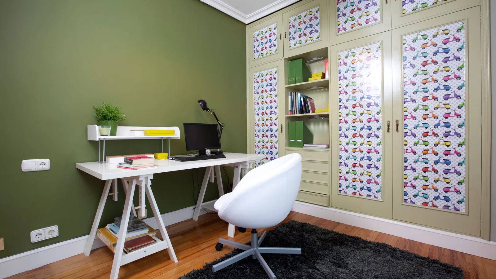 En Decogarden, vamos a decorar una habitación para convertirla en estudio acogedor. Para ello pintaremos las paredes con una gama de verdes para introducir luz a la estancia, renovaremos un viejo armario y una cómoda y crearemos una zona de trabajo con una atmósfera serena y acogedora.