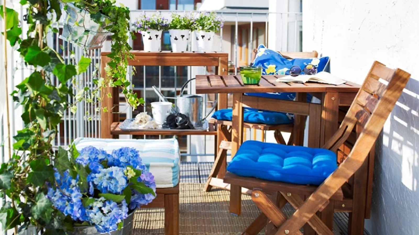 Los muebles plegables son una fantástica solución para las terrazas pequeñas. Ofrecen facilidad de almacenaje. Se pueden plegar y guardar en cualquier sitio. Normalmente se pueden apilar por lo que no necesitan mucho espacio.