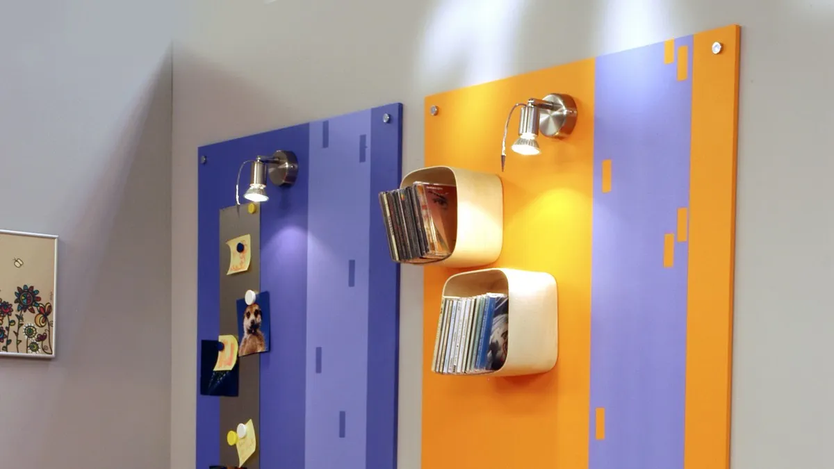 Con dos simples tableros y dos cajoneras crearemos unos paneles multiusos para tener todo en orden: música, revistas, cómics... Los decoraremos con un estilo informal, combinando colores llamativos y luminosos y mezclando materiales de diferentes texturas, como la madera y el metal. Y lo mejor de todo es que una vez que coloquemos estos paneles fijos en la pared apenas ocuparan espacio en la habitación.