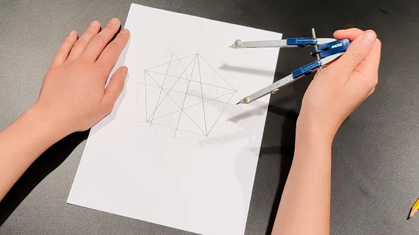 Hacer una estrella de cinco puntos es un trabajo de geometría es bastante sencillo y solo necesitas tres herramientas principales: un compás, una regla y un lápiz.