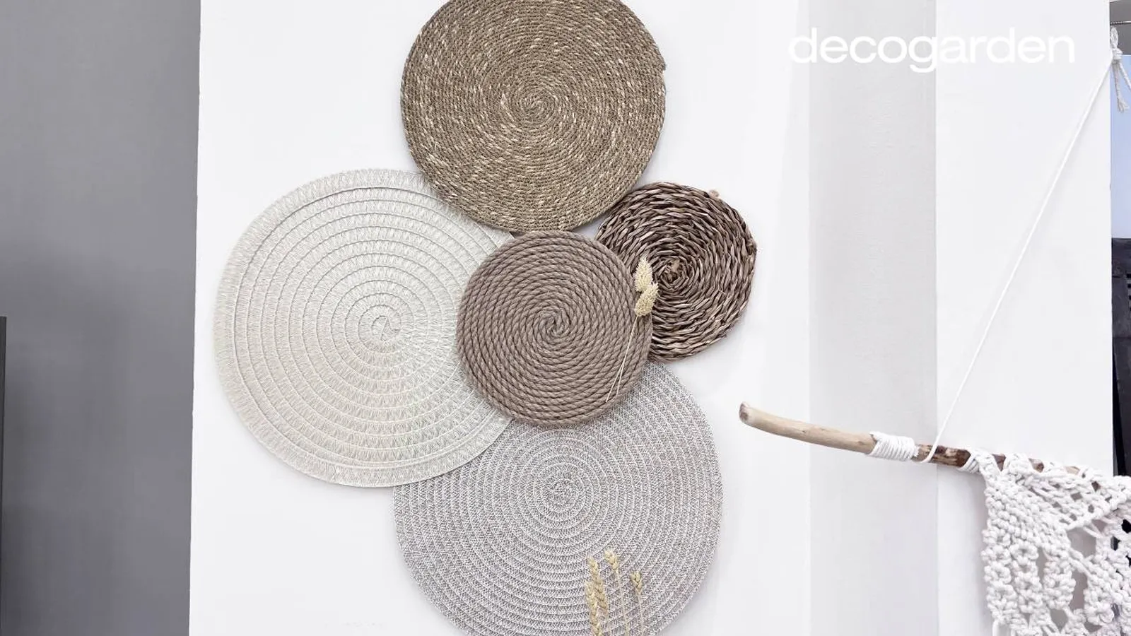 La combinación de diferentes platos fibras naturales están en plena tendencia, así que puedes elaborar diferentes modelos y combinarlos todos a la vez para crear un bonito rincón en las paredes de tu hogar.