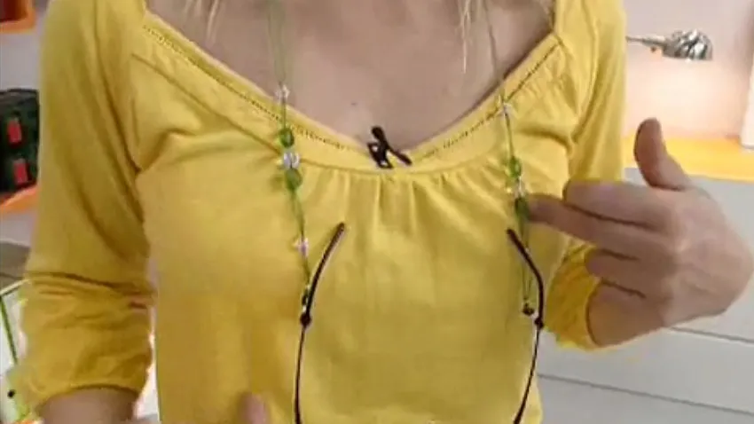 Crea un bonito colgador para gafas con cuerda de muselina y unas cuentas de cristales gracias a este trabajo de manualidades.