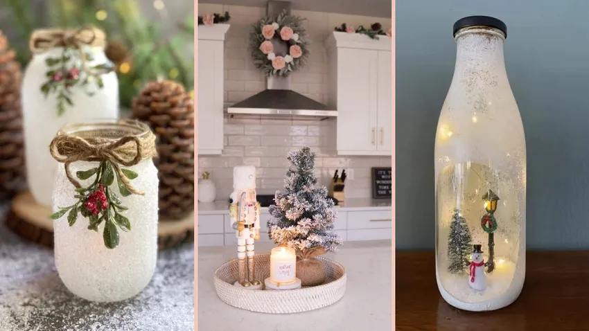 Centros de Navidad con tarros de cristal y figuritas navideñas