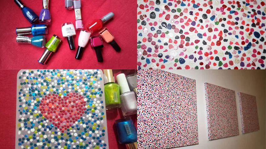 Con esta técnica de moteado con pintauñas se pueden pintar otros accesorios y complementos de decoración como lienzos y crear originales cuadros.