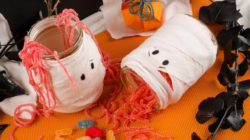 Cómo hacer tarros de cristal estilo momia para Halloween