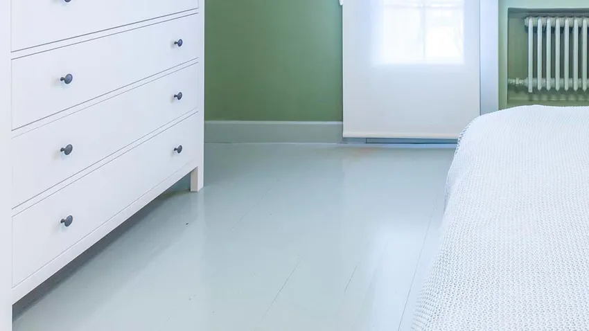 Pintar suelo y zócalos de madera del dormitorio (color verde)