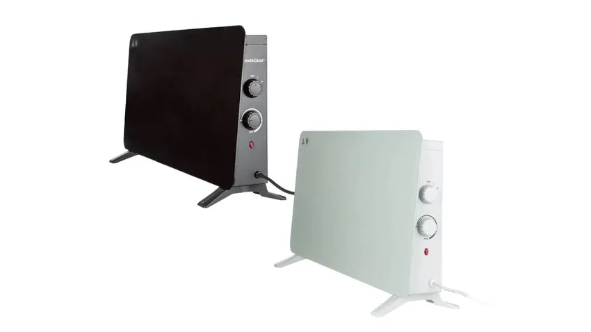 El calefactor de vidrio de Lidl tiene un termostato de regulación continua y dos niveles de calefacción 1000 W / 2000 W.