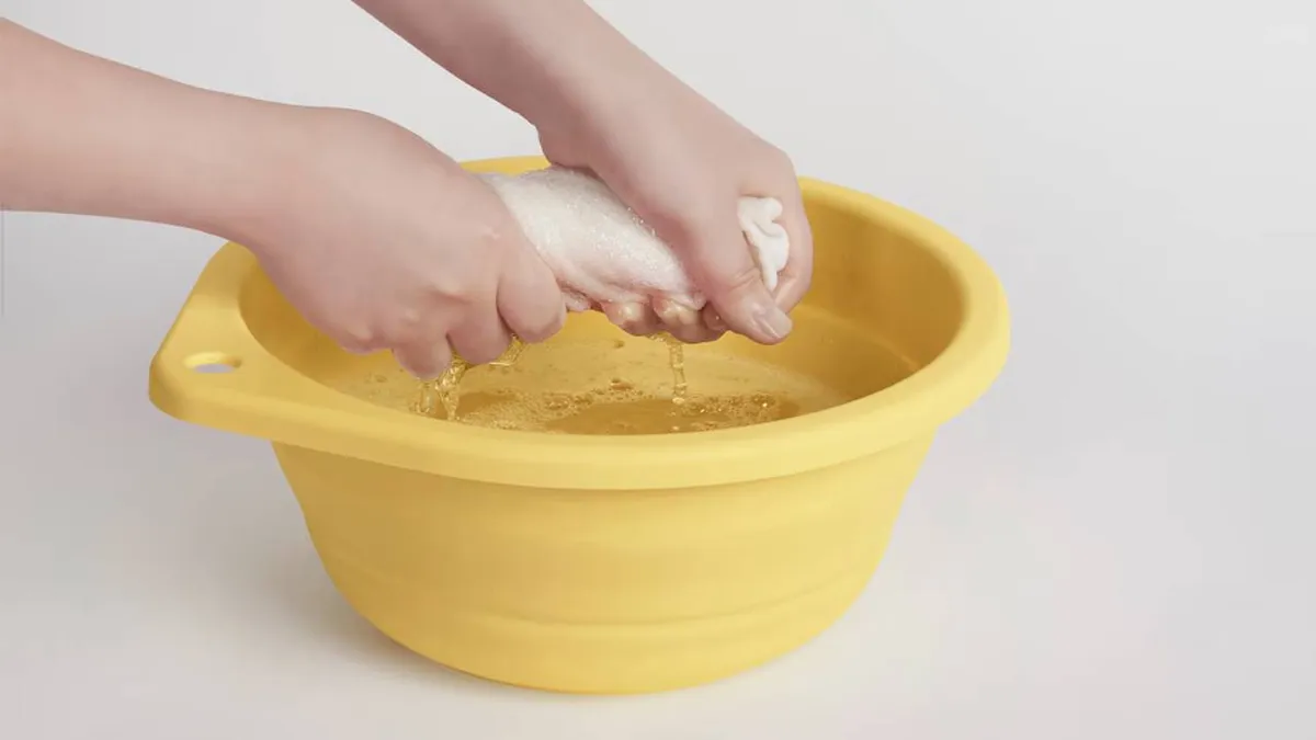 El cubo amarillo de silicona Pepprig de Ikea que te ayudará a ganar espacio de almacenamiento en tus armarios.