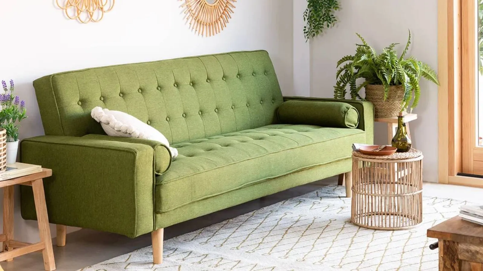 El sofá Brión de tres plazas de Sklum (ahora 279,95 euros, antes 409,95 euros) es un sofá cama bonito y práctico con un toque vintage pero a la vez moderno que quedará genial en un salón pequeño con encanto o en un estudio.
