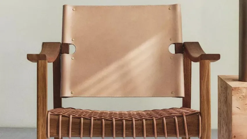 Su estructura está fabricada en madera de roble ahumado, con un asiento de piel de vaqueta trenzada y un respaldo ligeramente reclinado, que promete ser tan elegante como cómodo.
