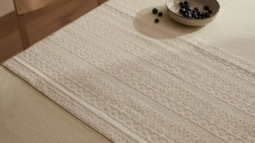 En el salón, un camino de mesa puede colocarse sobre una mesa de centro, combinado con un jarrón, libros de moda o velas para un efecto acogedor y moderno.