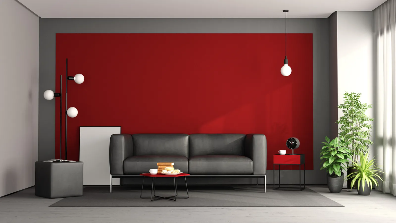 Decorar salón en rojo, negro y gris