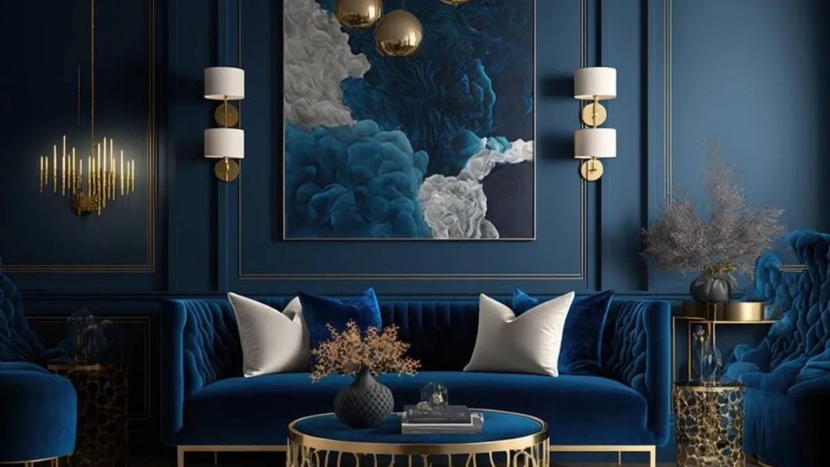 Puedes pintar una pared en el salón de azul marino y dejar las demás de blanco o gris claro.