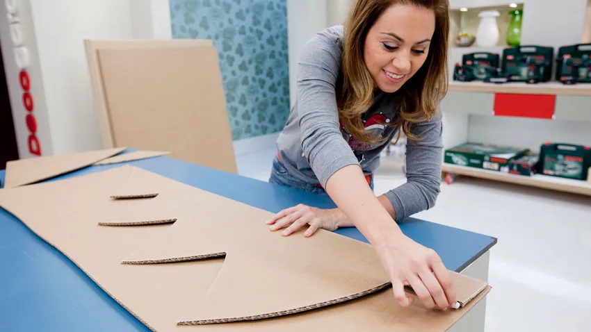 Monta la estructura de un original abeto desmontable con tableros de contrachapado de okume. Realizando unos sencillos agujeros será donde se cuelguen las bolas navideñas decorativas.