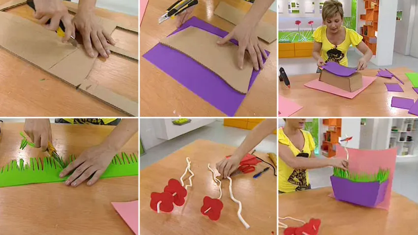 Pasos para crear un centro floral infantil de cartón y goma eva