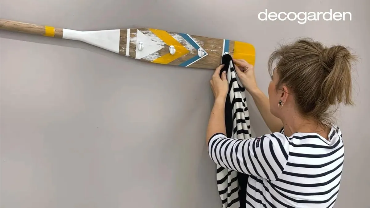 La decoración marinera es una de las favoritas del verano. Una decoración acogedora y fresca estupenda para darle un aire renovado a nuestro hogar. En esta ocasión vamos a aprender a pintar un remo de al que pondremos unos enganches para poder utilizarlo también de perchero. Un complemento marinero precioso, práctico, ¡y muy fácil de hacer! Toma nota y ponte manos a la obra.