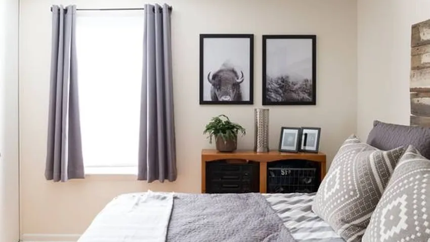 Dormitorio con cortinas cortas