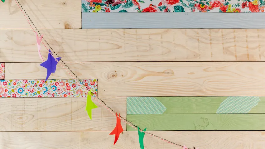 Revestir pared con tablas de madera, con colores y estampados