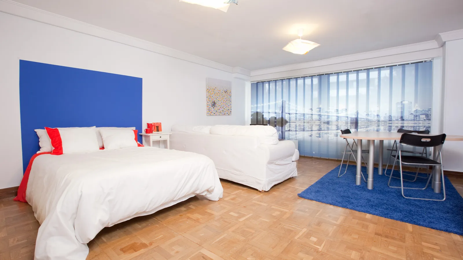 El resultado final: un dormitorio integrado en la decoración del salón logrando mantener un poco de intimidad.