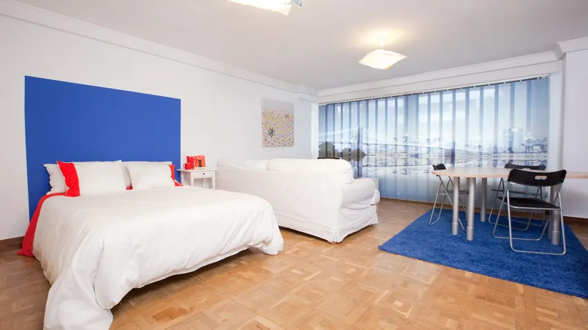 Nos encontramos con una estancia grande, de unos 25 metros cuadrados, que deberá ser dormitorio y salón a la vez. Para comenzar a integrar el dormitorio en el salón, el primer paso será vaciar toda la estancia.