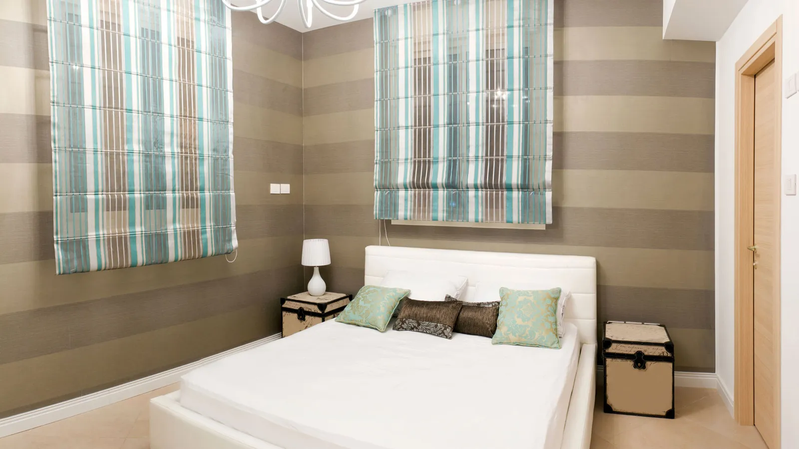 Dormitorio con líneas horizontales en las paredes. ¿Qué te parece este estilo o tipo de decoración para decorar un dormitorio de matrimonio?