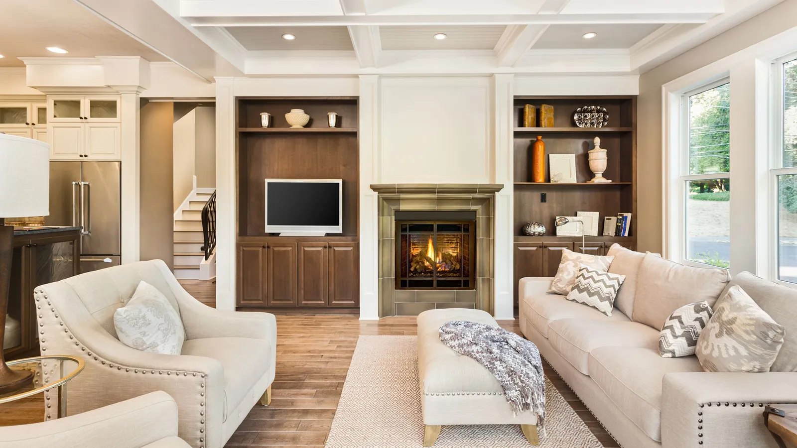 Los muebles suelen ser de madera. El pino, sobre todo, es muy utilizado pues proporciona solidez y fuerza. Las mesas auxiliares de cajones y las alacenas de madera con puertas de cristal son elementos muy comunes en un salón rústico, pero la chimenea es, sin duda, la gran protagonista.