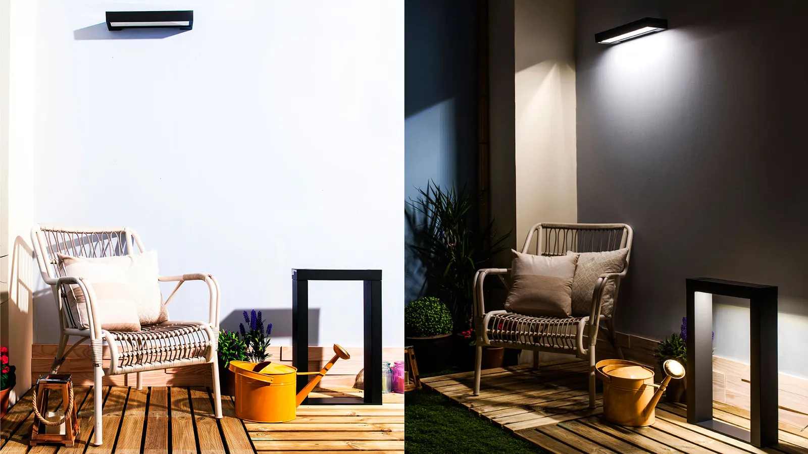 En este caso os vamos a hablar de una propuesta muy especial: los apliques y las lámparas sobremuro Inspire Ipanema. Exclusivas en Leroy Merlin, tienen un diseño actual y minimalista que las hace perfectas para jardines y espacios contemporáneos como una terraza mediterránea, donde la decoración rústica y fresca enmarca el diseño moderno de las luminarias.