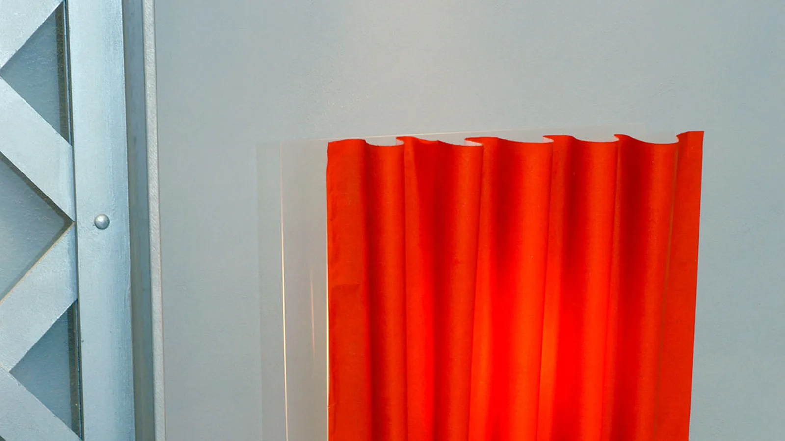 Entre los dos peldaños colocamos una pequeña plancha de plástico rígido de color naranja. Será una pantalla luminosa auxiliar. Para fijarla realizamos antes cuatro agujeros con una broca fina, uno en cada esquina la plancha, e introducimos los tirafondos.