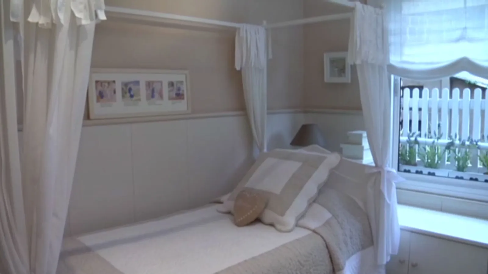 Se han pintado las paredes en tonos claros, se ha colocado una cama con dosel, que aporta dulzura y feminidad a la estancia, y se han añadido unos cajones para mantener todo ordenado.