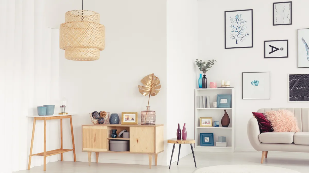 Lexie es un clásico dentro de las tendencias de iluminación de salones. Se trata de una lámpara de bambú que consigue crear ambientes muy acogedores y cálidos, algo imprescindible para un salón.
