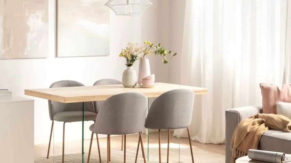 Para una decoración minimalista opta por un centro de mesa con líneas limpias y colores neutros. Un objeto de cerámica o cristal, como un cuenco o un jarrón, puede ser suficiente para añadir un toque de elegancia sin sobrecargar la mesa. En la foto, la mesa de comedor Kinfolk de Maisons Du Monde.